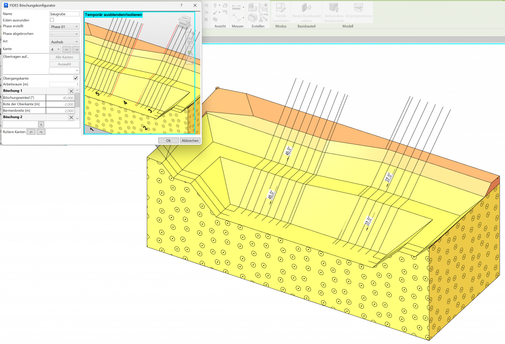 Damit können Sie Baugrubenmodelle wesentlich flexibler an reale Projektbedingungen anpassen – ob polygonal, rund, mehrstufig oder in Kombination mehrerer Bauzustände.